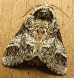 Overwinters as a pupa in a cocoon below the soil. Larva late June-early September which feed high in the tree canopy. |