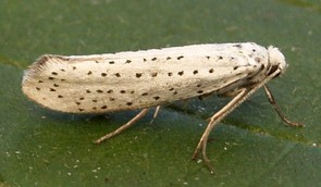 Shoot miner/web former. Eggs laid in a cluster of 50-100 on the