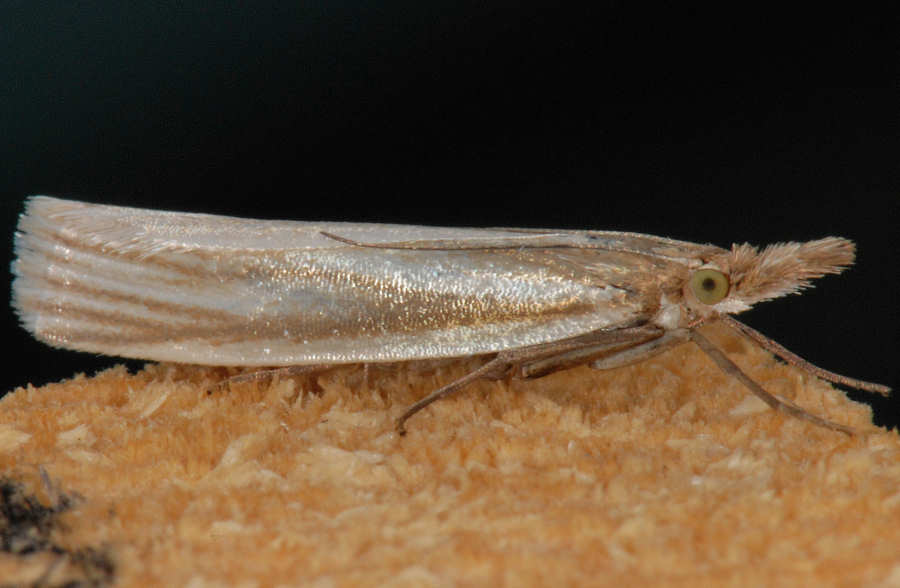 Grass moth. Eggs laid on foodplant. Larva lives in a tubular silken